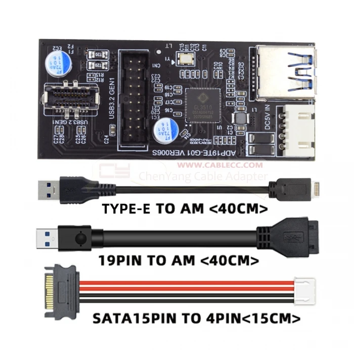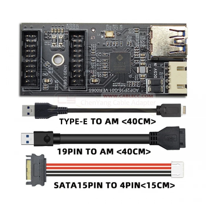 Con este adaptador, puede conectar directamente la placa base tipo E o el enchufe usb3.0 de 20 pines, convertido en enchufe dual usb3.0 de 20 pines y tipo E.