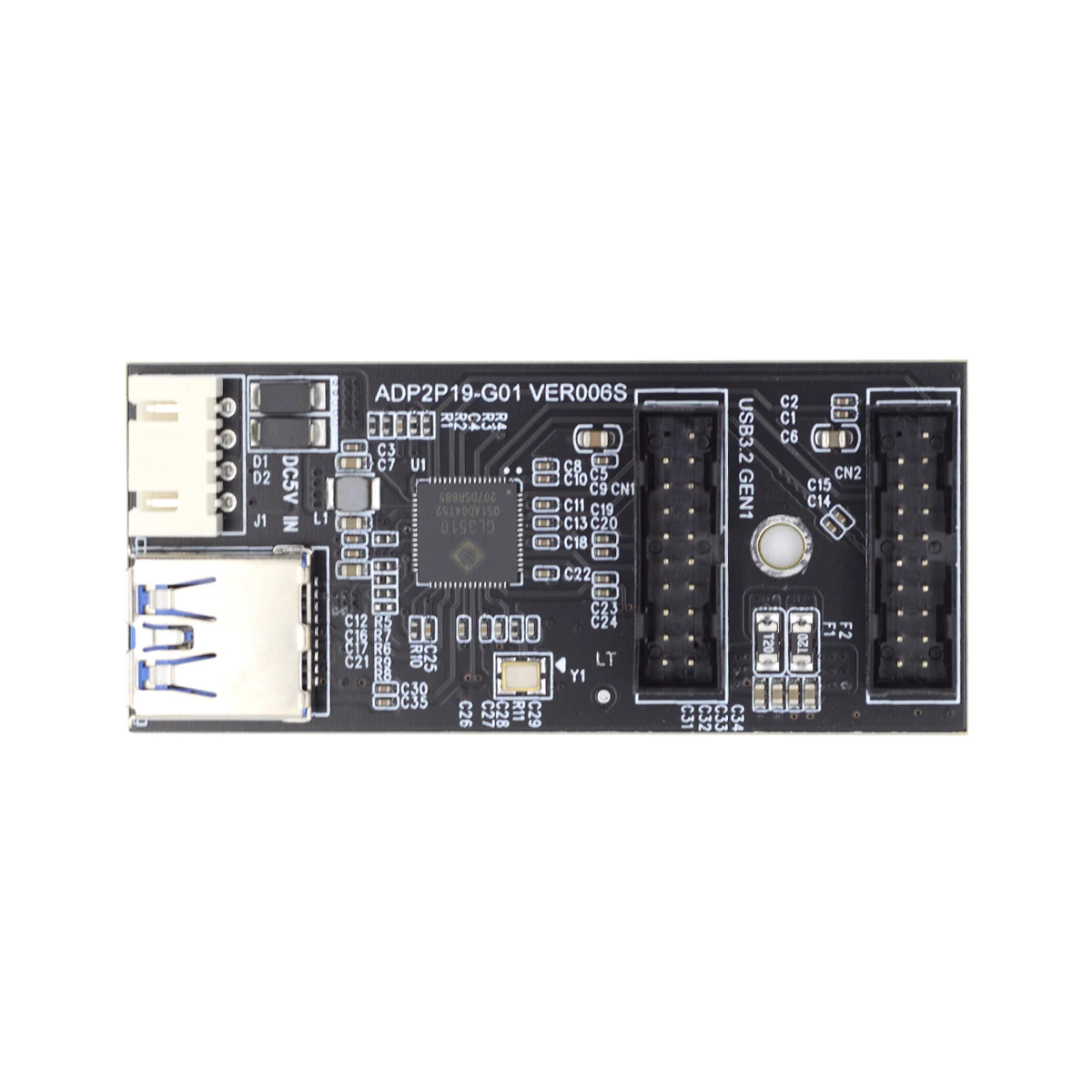 Cabezal único de 19/20 pines a USB 3,0 19/20 pines y tipo E MujerPuertos dualesHUB divisor 5GbpsAdaptador tipo PCBA