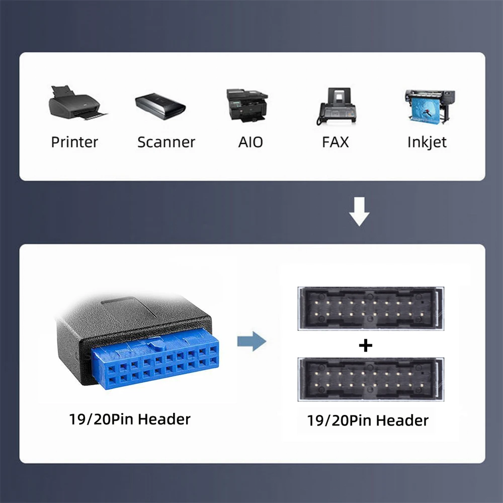 Doble salida USB 3,0 de 20 pines: compatible con la mayoría de los dispositivos USB 3,0 de 20 pines como panel frontal, cable, concentrador USB, lector de tarjetas, etc.