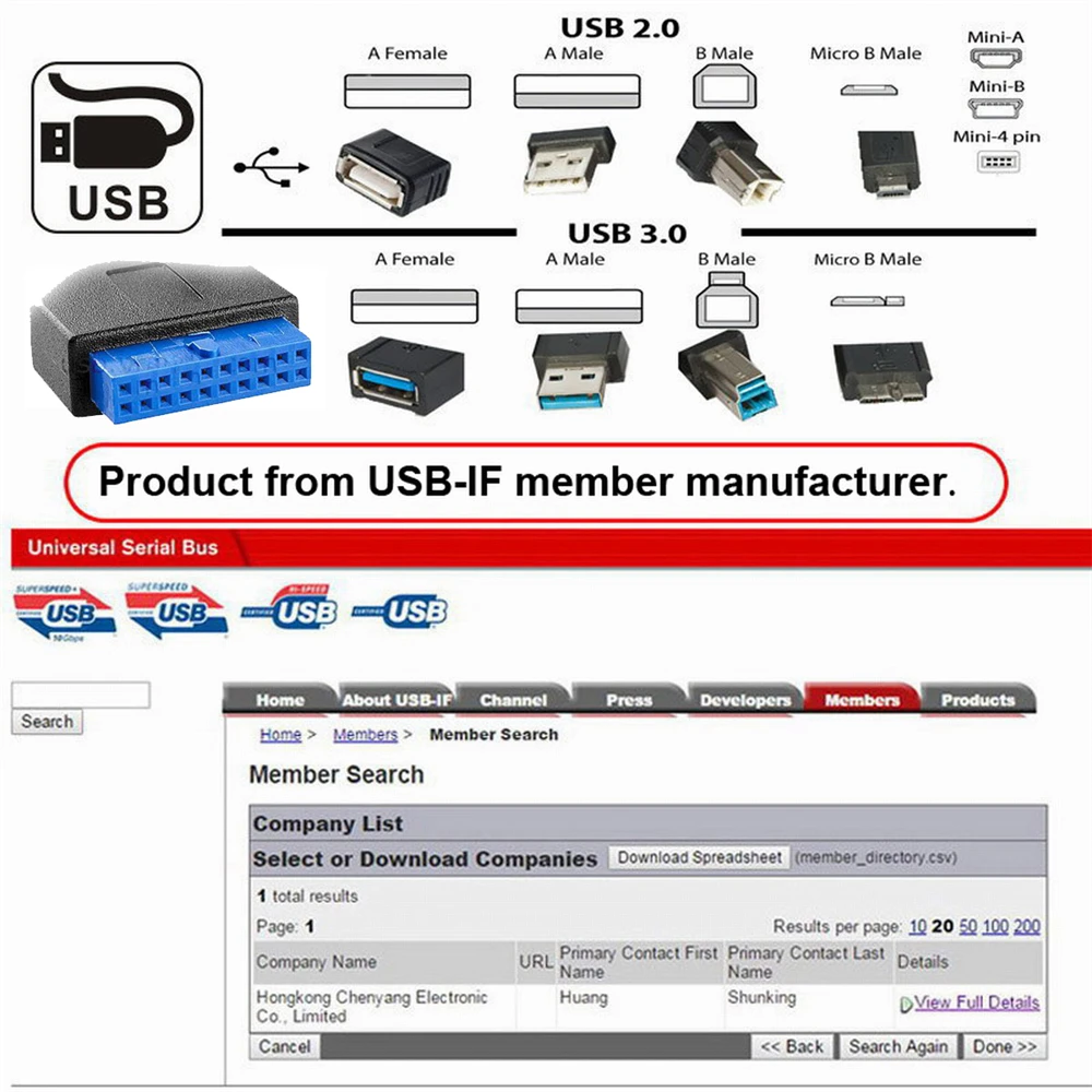 Comprar CY PCBA-concentrador divisor tipo 5gbps, puertos duales, USB 3,0, 19/20Pin hembra a adaptador de cabezal individual de 19/20Pin
