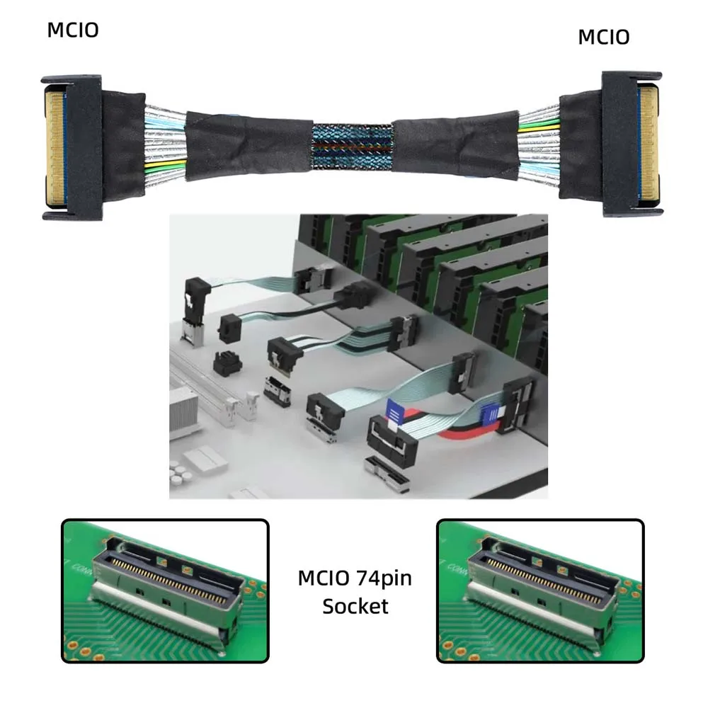 Cable de alto rendimiento para equipos de red y servidores: El MCIO Mini Cool Edge IO está diseñado para admitir una amplia gama de protocolos, incluidos SAS, PCIe, Ethernet y más, asegurando un rendimiento óptimo para su equipo.
