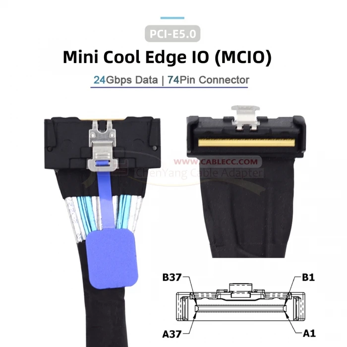 Cable de alto rendimiento para equipos de red y servidores: El MCIO Mini Cool Edge IO está diseñado para admitir una amplia gama de protocolos, incluidos SAS, PCIe, Ethernet y más, asegurando un rendimiento óptimo para su equipo.