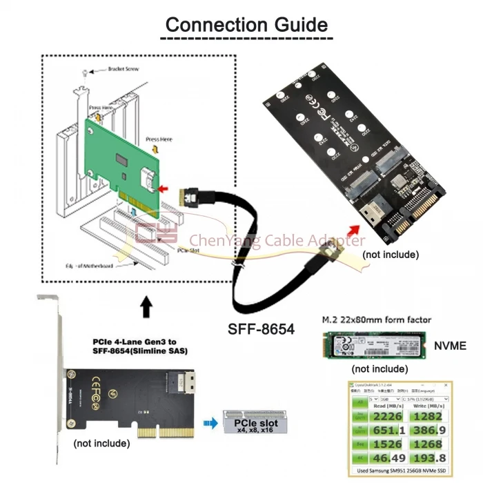 Comprar CY PCI-E-Cable Slimline SFF-8654 Slim SAS Target SAS 4,0 SFF-8654 4i, 38 pines