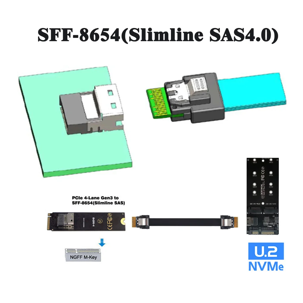 PCI-E Slim Line SAS 4,0, 4i, 38 pines Host a cable de destino SAS delgado de 50cm, de 50cm, de línea delgada