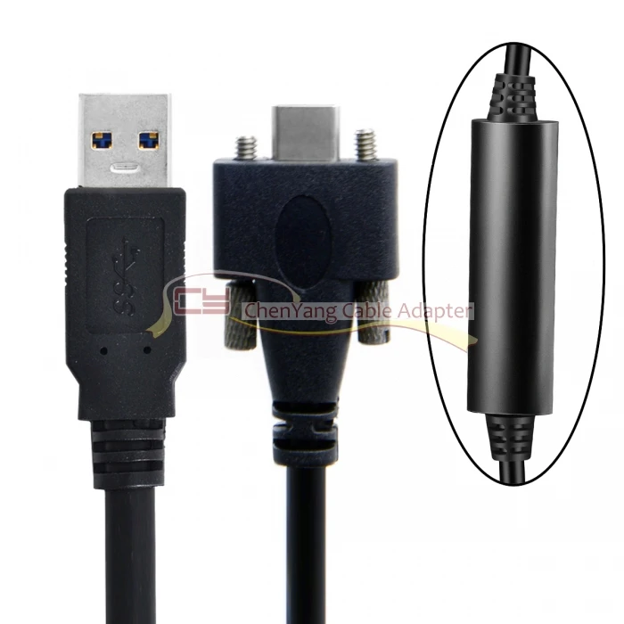 Comprar CY-tornillos duales USB 3,1 tipo C, bloqueo a Cable de datos estándar USB3.0, tipo de montaje para grabadora de cámara, 5 metros