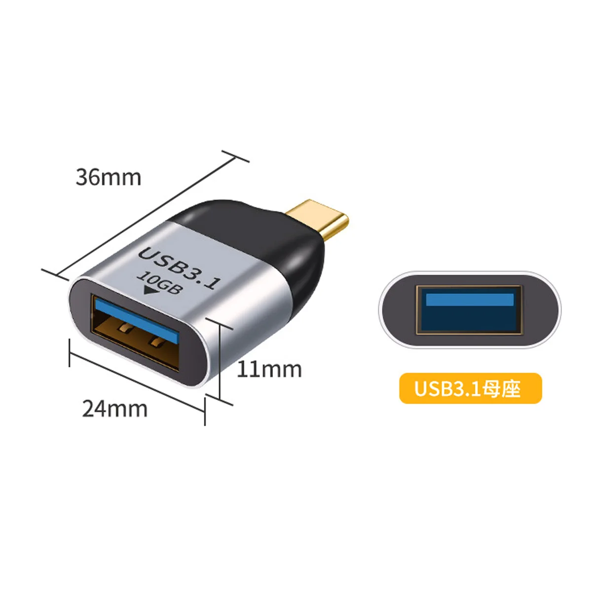 USB 3,1 Tipo C Host macho a USB3.0 Tipo A Hembra OTG Data 10Gbps Adaptador para computadora portátil y teléfono