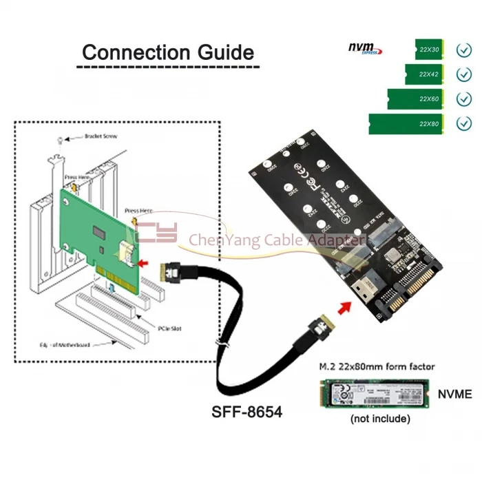 Kit de a U2 NGFF M-Key a Slimline SAS NVME PCIe SSD SATA Adaptador para placa base