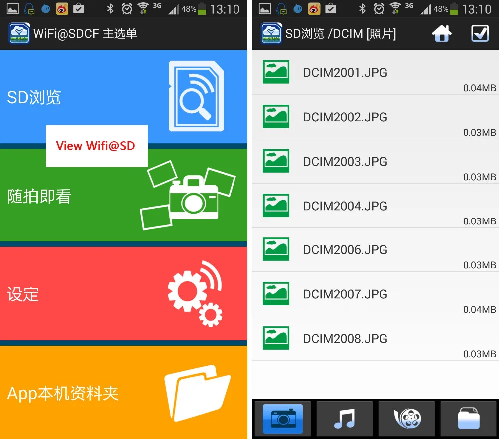 Inserte su tarjeta Micro SD HC en el adaptador WiFi CF y podrá acceder a fotos y videos de alta calidad enviados de forma inalámbrica desde su cámara a través de Wi-Fi a su teléfono inteligente o tableta para compartir.