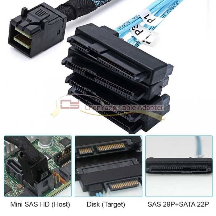 Cable de datos de disco duro de 29 pines a 4 SAS Mini SAS