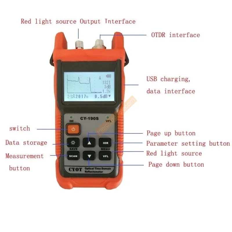 Type-A1:CY190Pro OTDR OPM VFL1310nm:CY190Pro 1310nm sola longitud de onda OTDR + potencia ópticaMedidor + Localizador Visual de fallas luz roja
