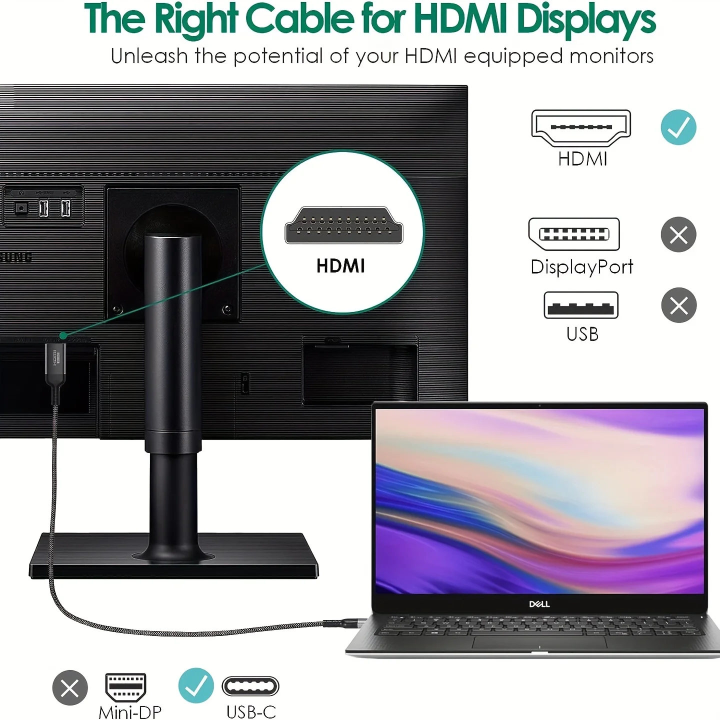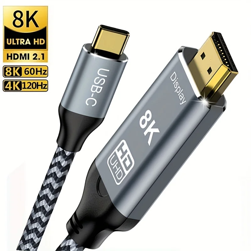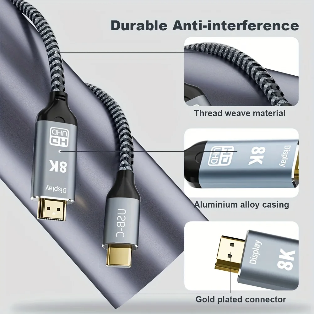 【Cable ultra duradero】La carcasa de aluminio, la cubierta trenzada de nailon y Los conectores chapados en oro garantizan una durabilidad superior del cable 8K USB tipo C a HDMI 2,1 bajo el uso intensivo y múltiples enchufes y desenchufes.