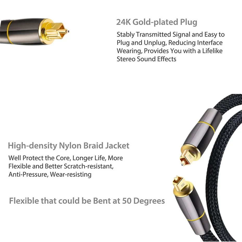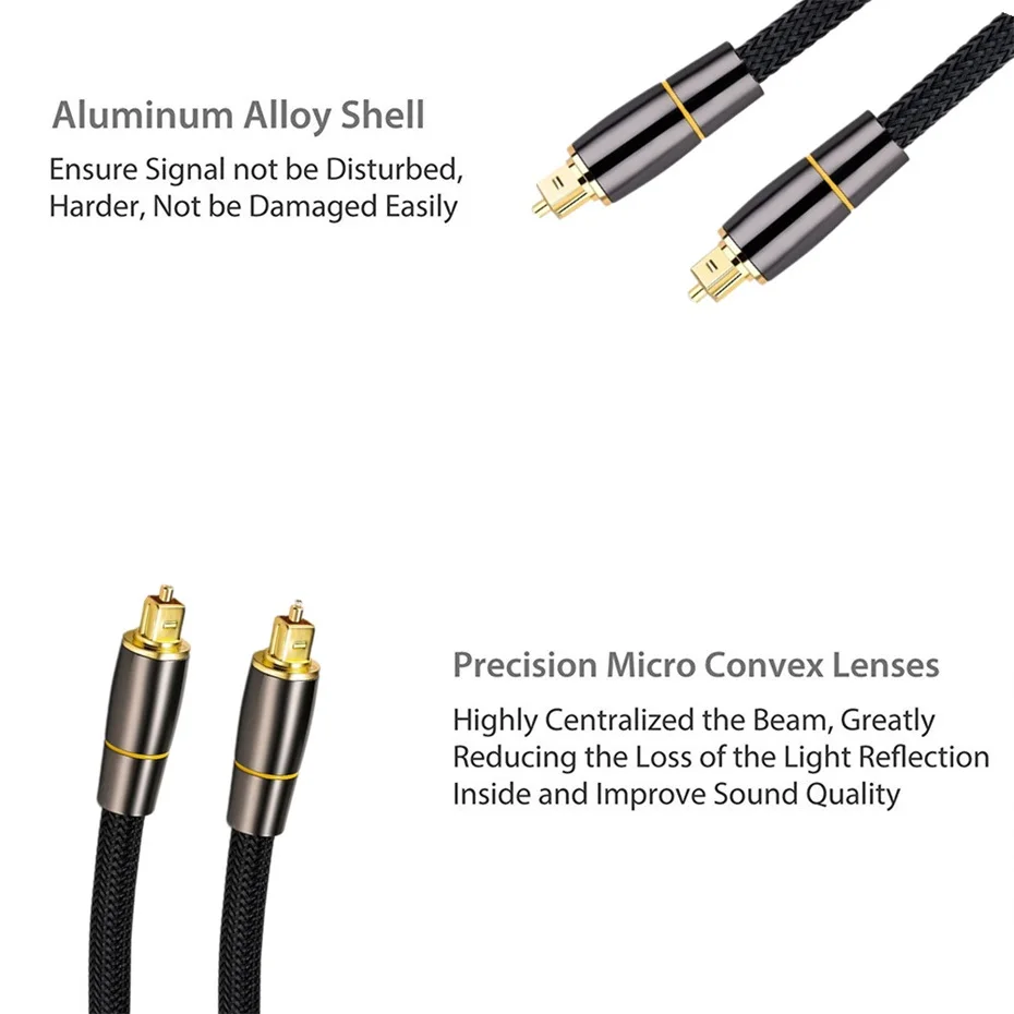 De alta gama:Este cable de audio de fibra óptica sin metal, con una cubierta de PVC totalmente flexible, es completamente inmune a las interferencias eléctricas.Cada cable se somete a pruebas de varias etapas durante la fabricación para garantizar la máxima calidad y durabilidad del producto.