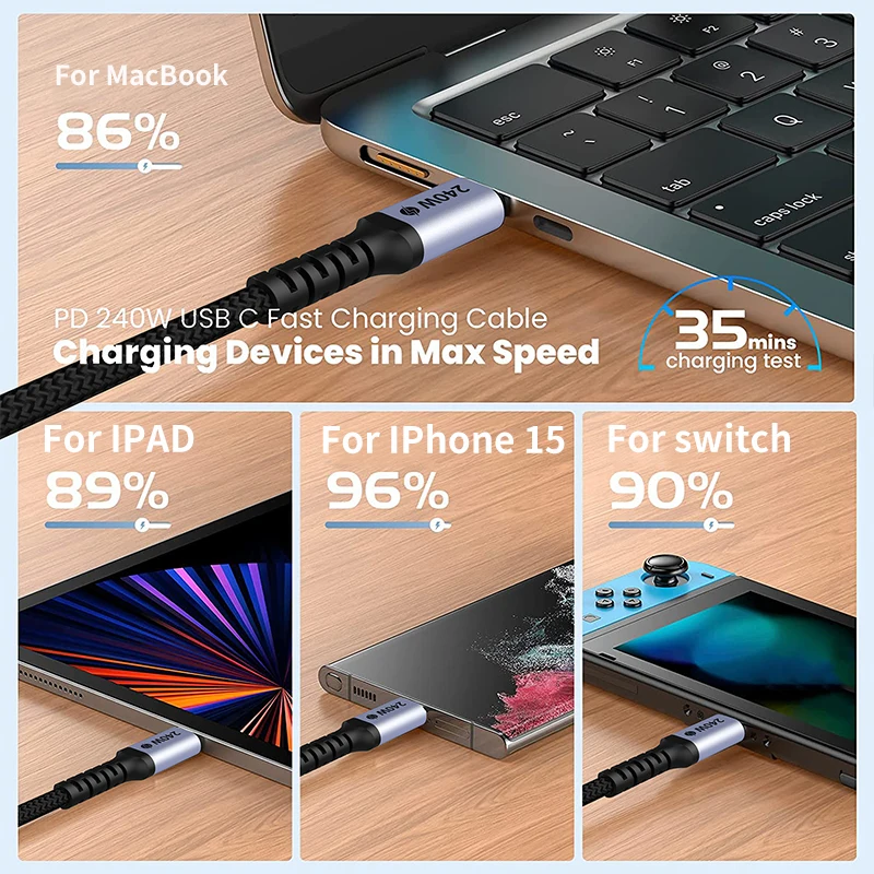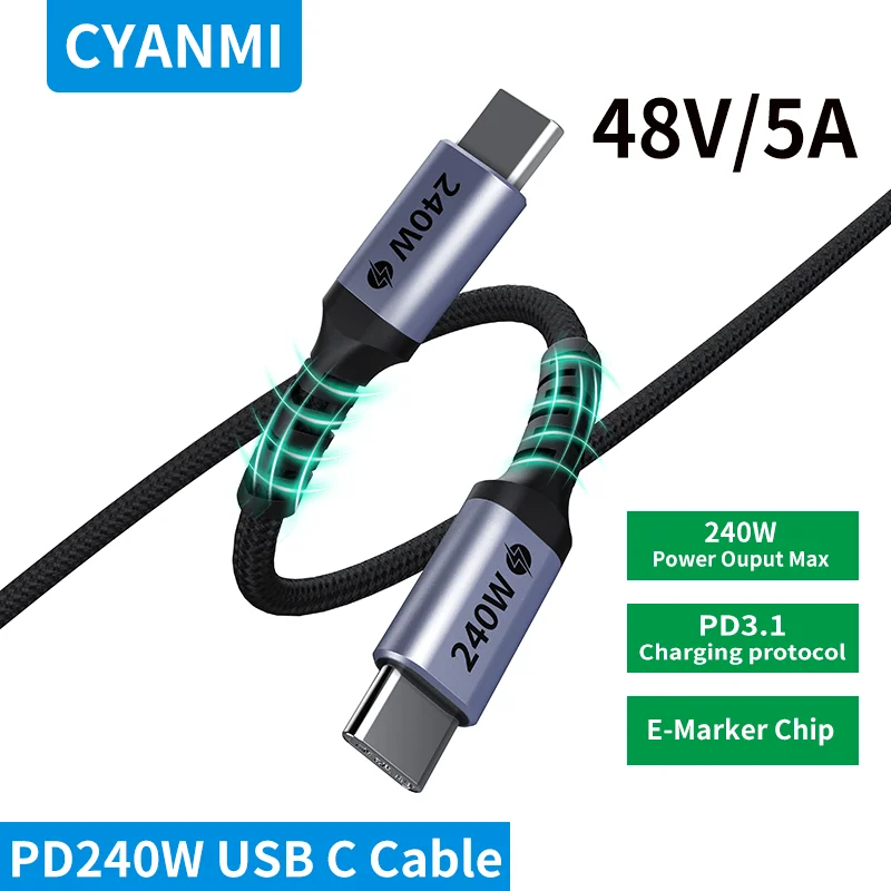 [Compatibilidad perfecta]: El cable USB C CYANMI de 240W tiene una excelente compatibilidad, ajuste perfecto para teléfonos móviles, tabletas y portátiles. Como iPhone 15, iPhone 15 Pro, iPhone 15 Plus, Macbook Air/Pro, samsung Galaxy S23 Ultra/S23 +/S23/S22 Ultra/S22 +/S22/S21 Ultra/S21 +/S21/S20/ S20 +/S20 Ultra/ Note 20, iPad Mini 6, iPad Pro, iPad Air, cable USB C a C CYANMI tiene una excelente compatibilidad. Note 20, iPad Mini 6, iPad Pro, iPad Air, Steam Deck, Switch, Pixel Series y Android AUTO.