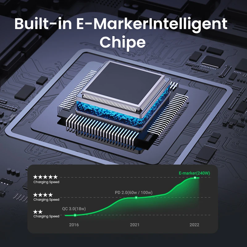 [CHIP INTELIGENTE ÚNICO DE LA E-MARK]: el cable CYANMI 240W USB C a USB C está integrado con el mejor chip E-Mark de transferencia de energía, cuando la carga alcanza el 91%, se convertirá automáticamente en carga lenta, protege mejor la salud de la batería de su dispositivo, rápido y seguro, es una excelente opción para iphone15, Macbook Pro, etc. No más problemas de sobrecalentamiento.