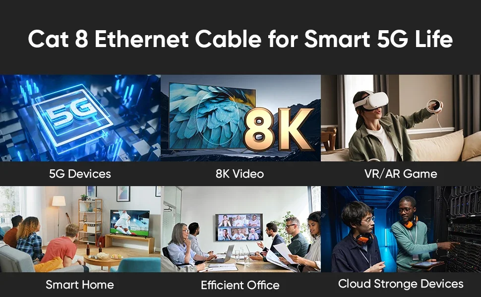 El cable Ethernet Cat 8 admite ancho de banda de hasta 2000 MHz y velocidad de transmisión de datos de 40 Gbps, lo que garantiza una velocidad de red estable para jugar en línea, navegar por Internet, transmitir video HD en línea, cargar, descargar y más.