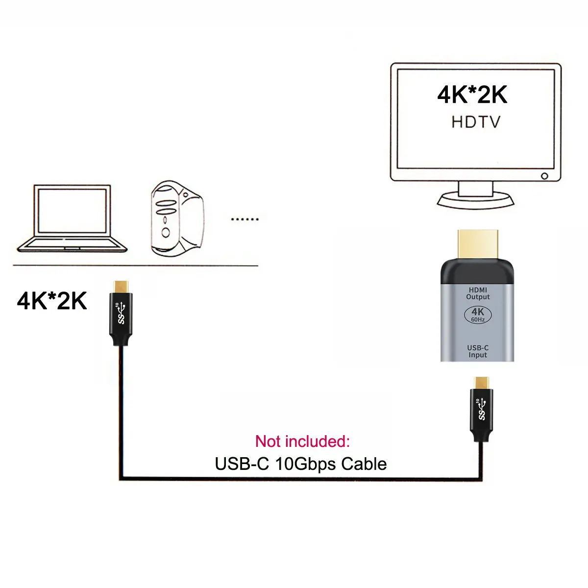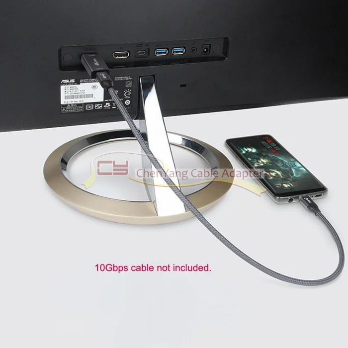 Puede conectar el cable de 10Gbps al adaptador al cable de la USB-C y luego conectarlo a las pantallas HDMI.