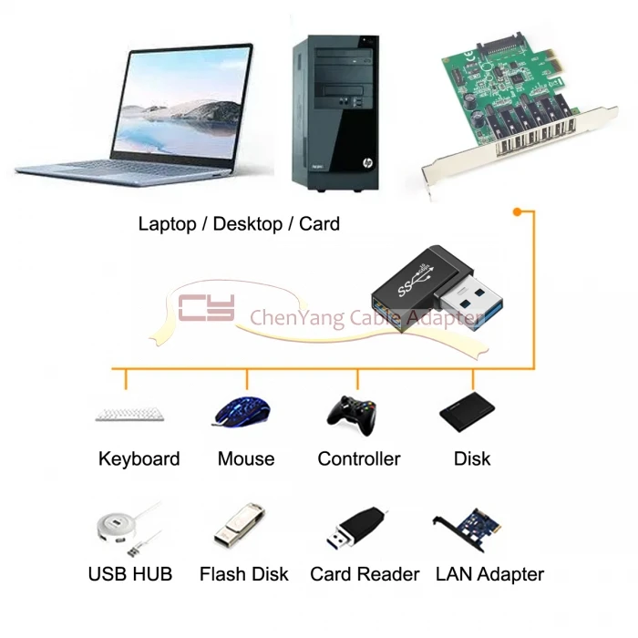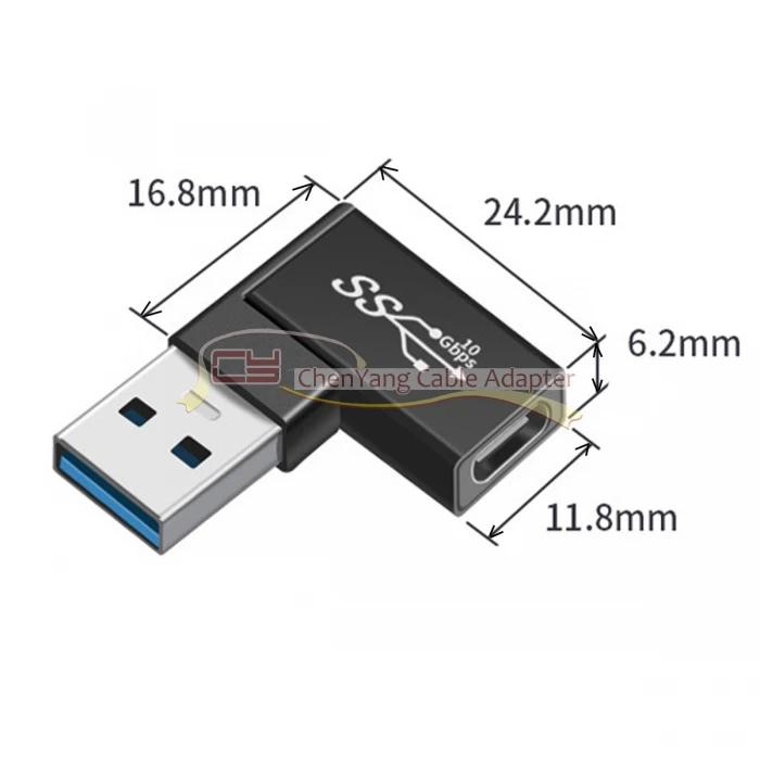 Comprar CYDZ-Adaptador USB 3,1 tipo C macho hembra A USB3.0 tipo A hembra, datos OTG, 10Gbps, 90 grados, 3 unids/lote