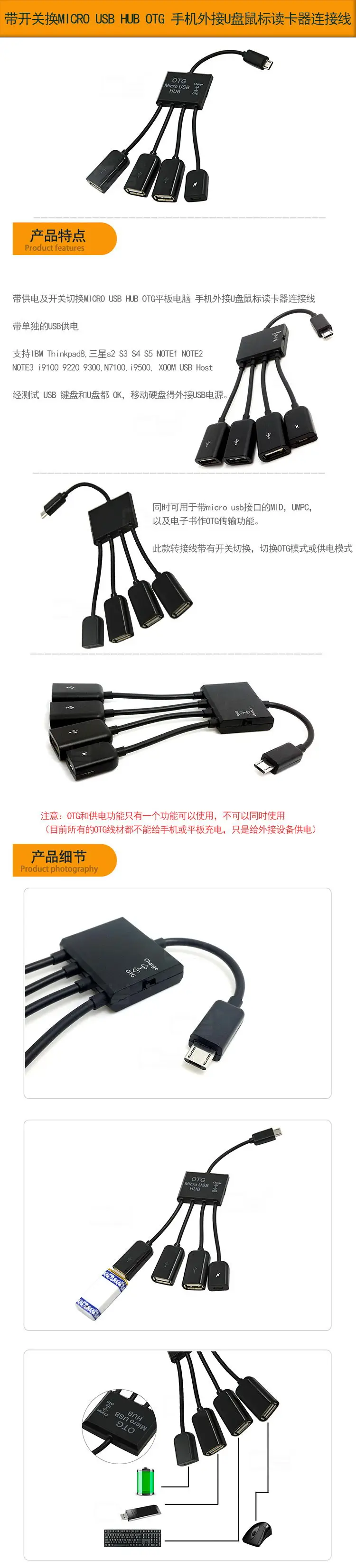 Cable adaptador Micro USB Host OTG de 3 puertos Hub con alimentación para teléfono celular y tableta Galaxy S5 i9600 Note3 N9000