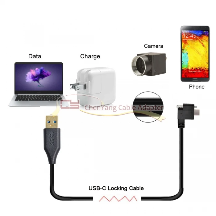 Comprar CYDZ Jimier-Cable de datos USB 3,1 tipo C, tornillo de bloqueo único a USB 3,0 estándar, 90 grados