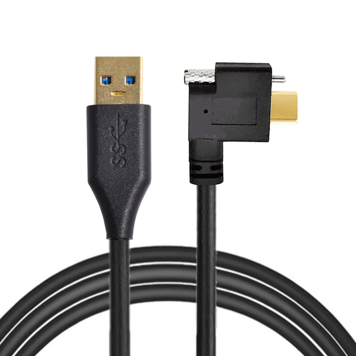 USB 3,1 en ángulo izquierdo y derecho Tipo-C Bloqueo de un solo tornillo al cable de datos USB3.0 estándar 90 grados para cámara