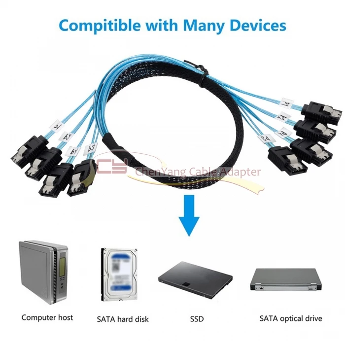 Comprar CYDZ SAS Internal 4 SATA Host to 4 SATA 7pin Target Hard Disk 6Gbps Data Server Raid Cable 50cm zihan