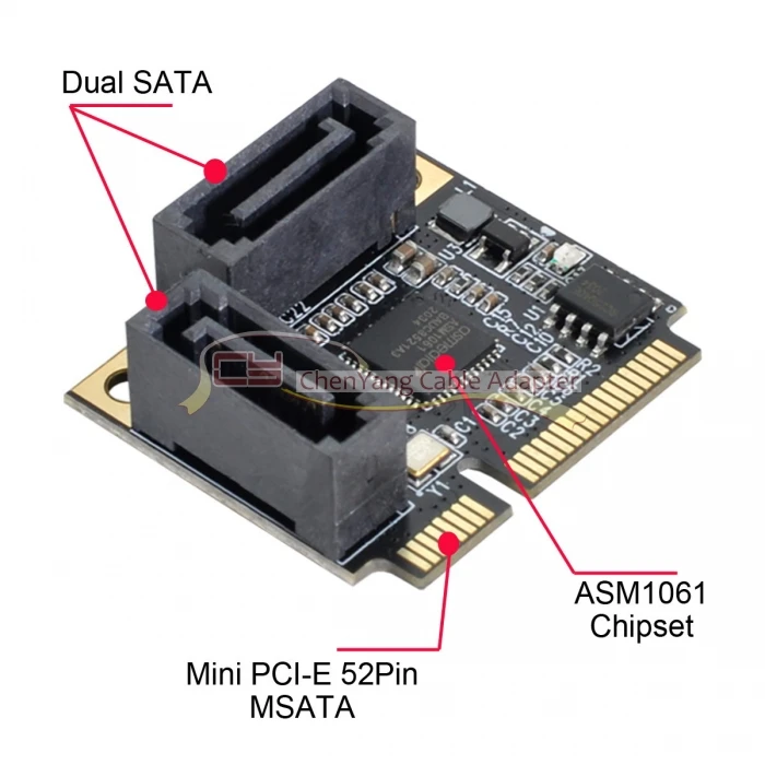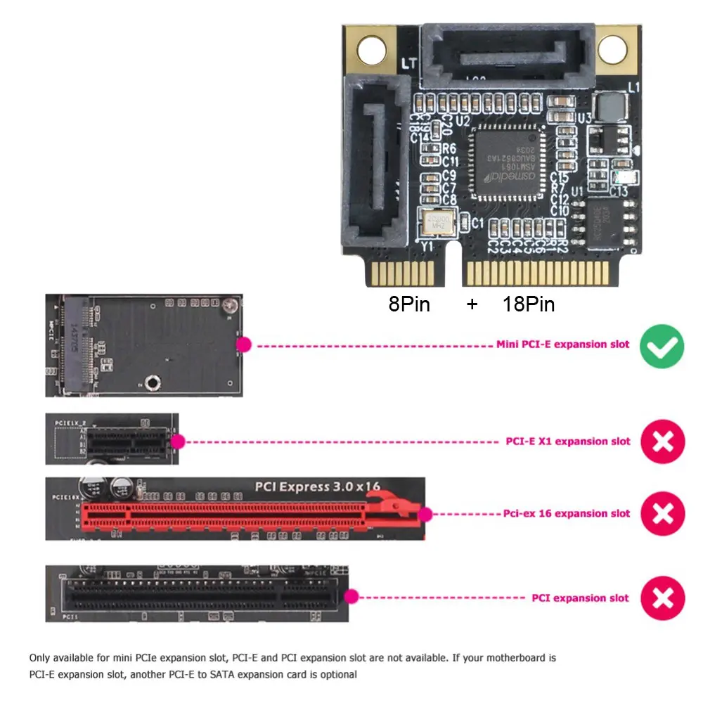 Mini PCI-E PCI Express a SATA 3,0 Adaptador de puertos duales Convertidor Tarjeta de extensión de disco duro