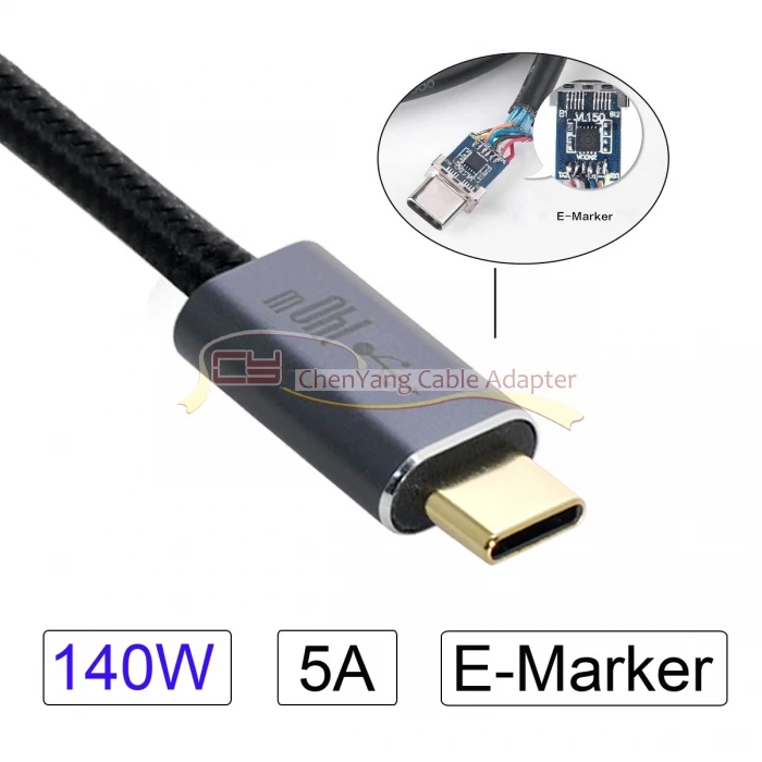 Cable DE DATOS DE versión USB 2,0 macho a macho tipo C, compatible con E-Marker 140W para computadora portátil y teléfono