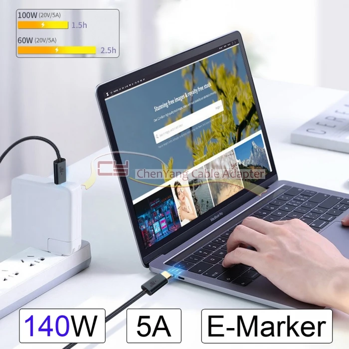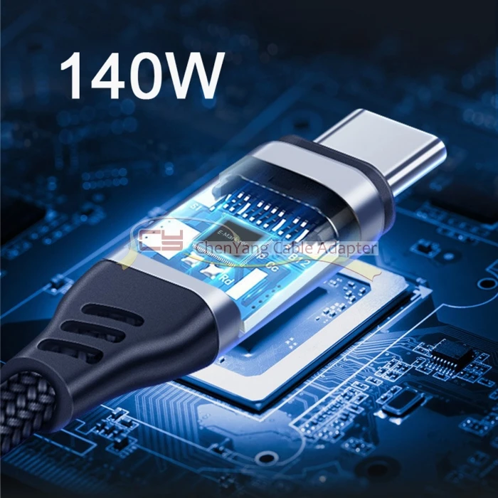 Chipset Emarker integrado, compatible con carga de energía escalable de 140W/100W y datos USB 2,0 de 480Mbps.