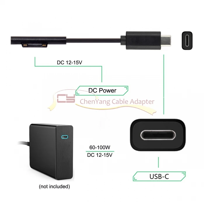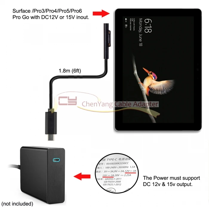 Cable de carga de libro USB 3,1 tipo C, DC 12-15V a Surface Pro3 Pro4 Pro5 Pro6, 1,8 m