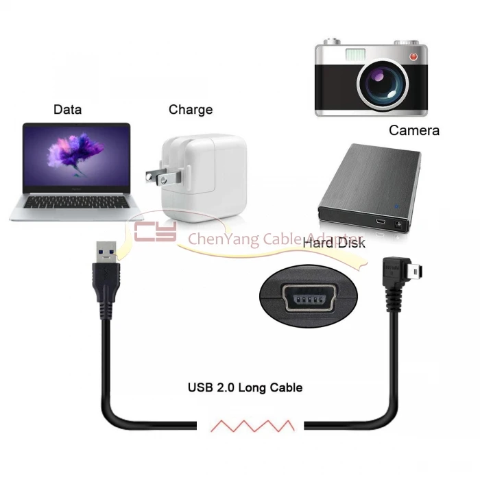 Comprar CYDZZihan-Cable de datos USB 2,0 macho a derecho, Mini USB tipo B de 90 grados, 5 pines, con ferrita de 3,0 m