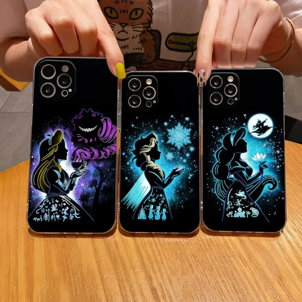 D-Disney Princesa Bella Ariel MulanFunda de teléfono transparente para iPhone 11 15 14 Pro Max 12 13 Mini 16 Pro X XS XR 8 7 Plus funda transparente suave