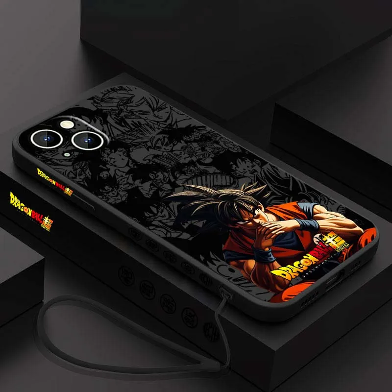 D-Dragon Ball Art Son Goku Cool para Apple iPhone 17 16 15 14 13 12 11 Air Mini Plus Pro Max cubierta de la caja del teléfono de la cuerda izquierda líquida