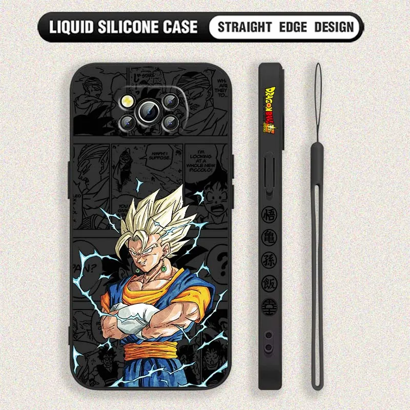 D-Dragon Ball Art Goku Saiyan para Xiaomi Poco X6 X5 X4 X3 M6 M5 M3 F6 F5 F4 F3 GT Pro 5G cubierta de la caja del teléfono de cuerda izquierda líquida