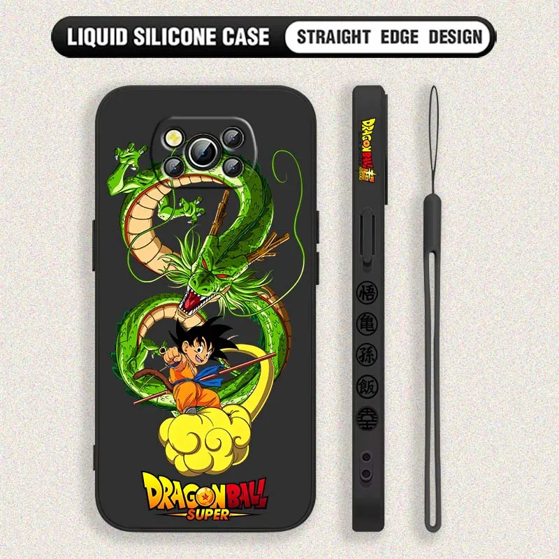 D-Dragon Ball Comics Goku Dragon para Xiaomi Poco X6 X5 X4 X3 M6 M5 M3 F6 F5 F4 F3 GT Pro 5G cubierta de la caja del teléfono de cuerda izquierda líquida