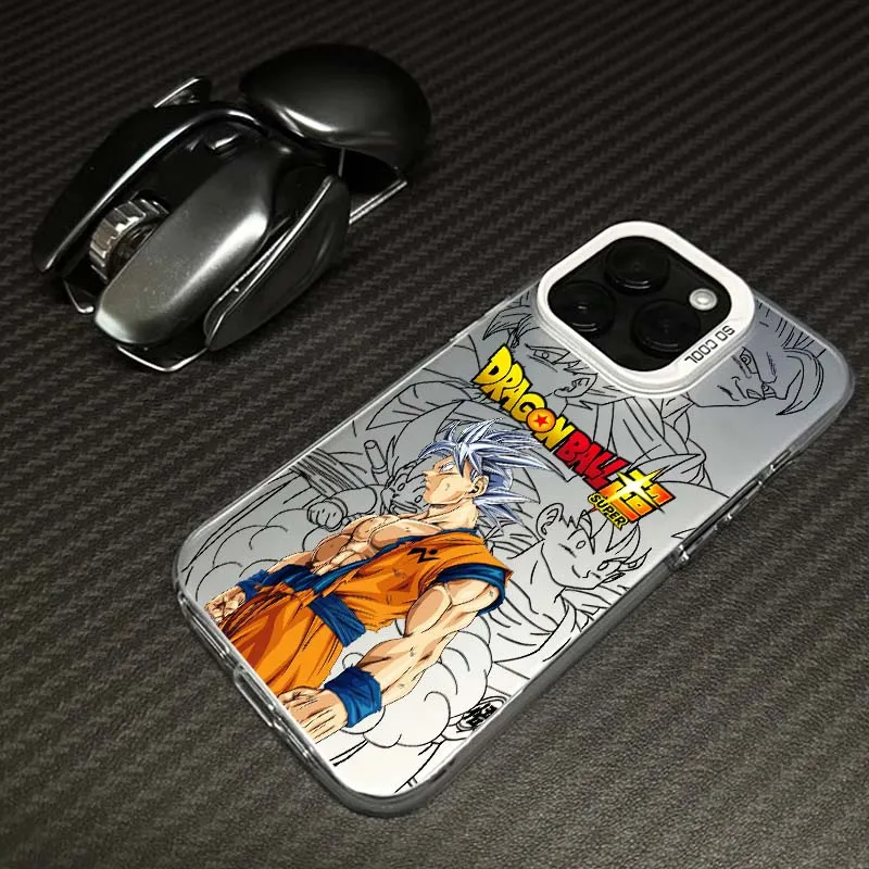 D-Dragon Ball Cool Son Goku para iPhone 17 16 15 14 13 12 11 Air Pro Max Plus Mini funda plateada colorida para teléfono