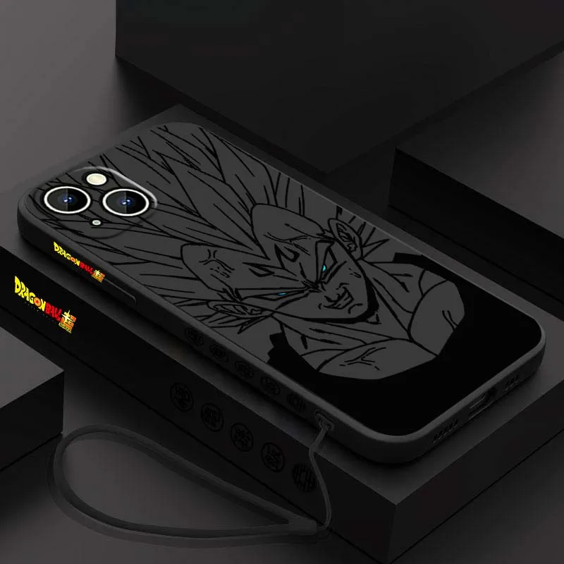 D-Dragon Ball Cool Vegeta Anime para Apple iPhone 17 16 15 14 13 12 11 Air Mini Plus Pro Max cubierta de la caja del teléfono de la cuerda izquierda líquida
