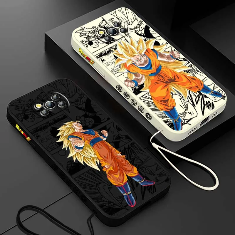 Comprar D-Dragon Ball Goku funda de Anime para Xiaomi Poco X6 X5 X4 X3 M6 M5 M3 F6 F5 F4 F3 GT Pro 5G funda de teléfono con cuerda izquierda líquida