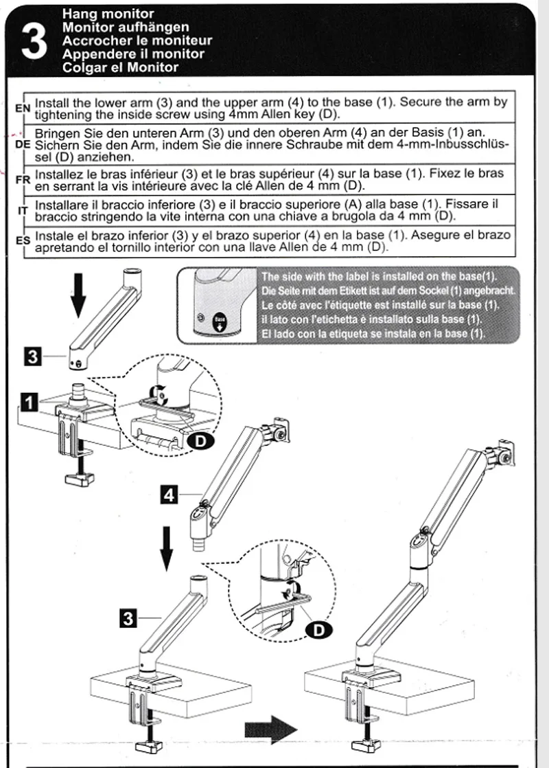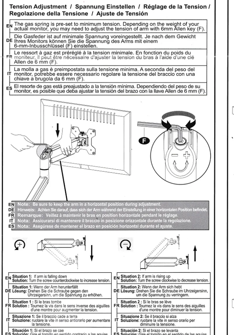 Carga: 3-10 kg (asegúrese de que su pantalla esté dentro de este rango o que el resorte de gas del soporte no funcione)
