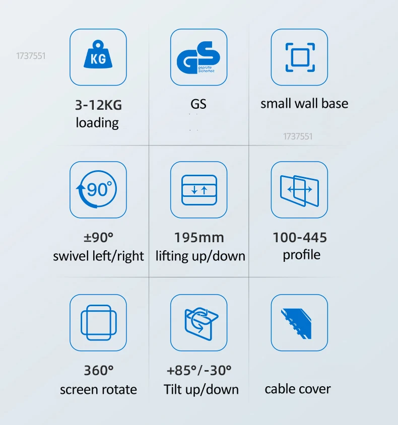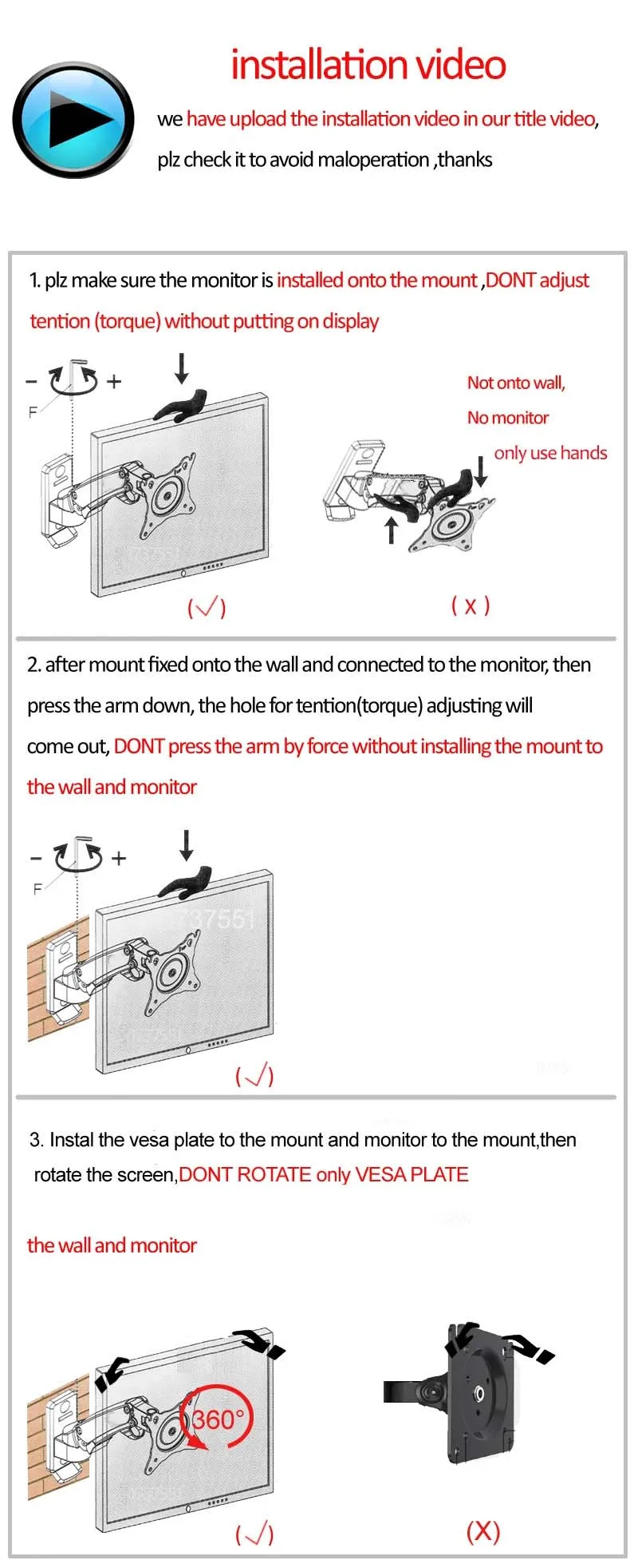 2) Parámetros técnicos-------MONTAJE DE PARED para TV con resorte de gas