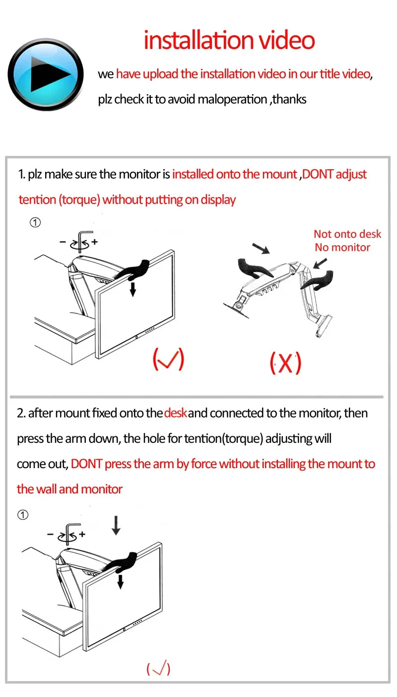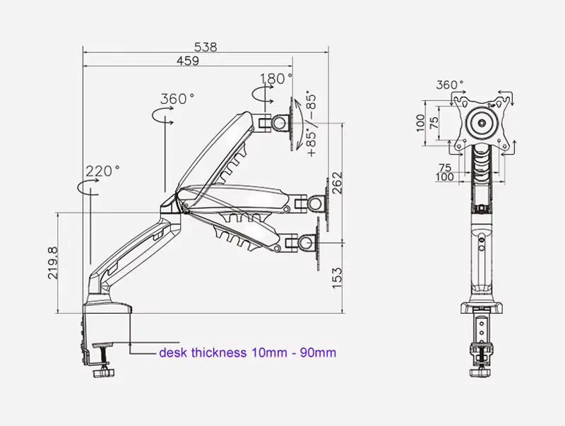 Carga: 2-9 kg (asegúrese de que su pantalla esté dentro de este rango o que el resorte de gas del soporte no funcione)