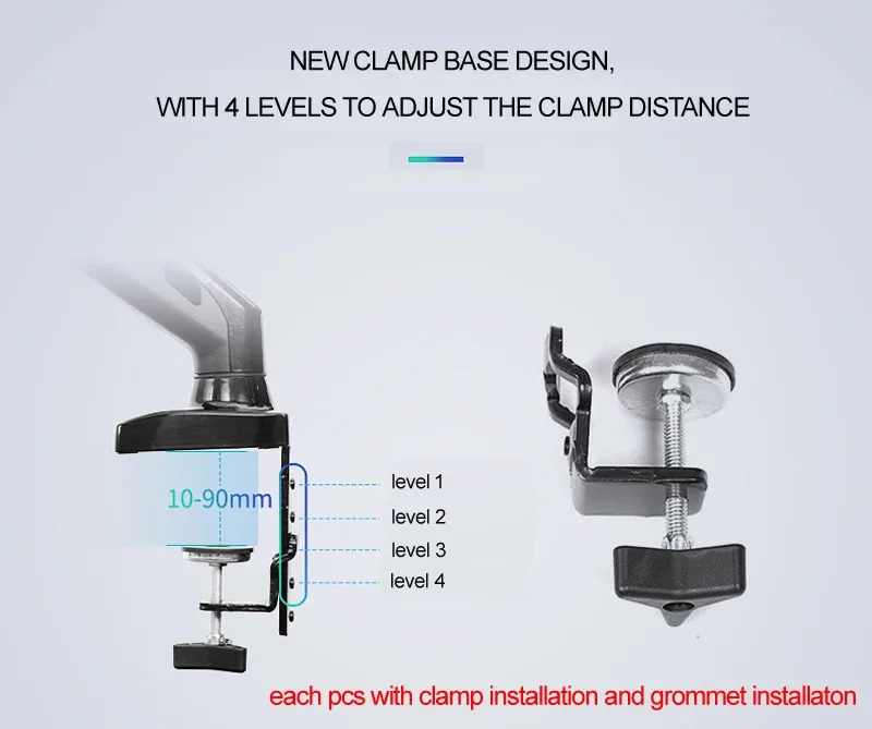 base de abrazadera: para escritorio con un espesor de 10 a 90 mm