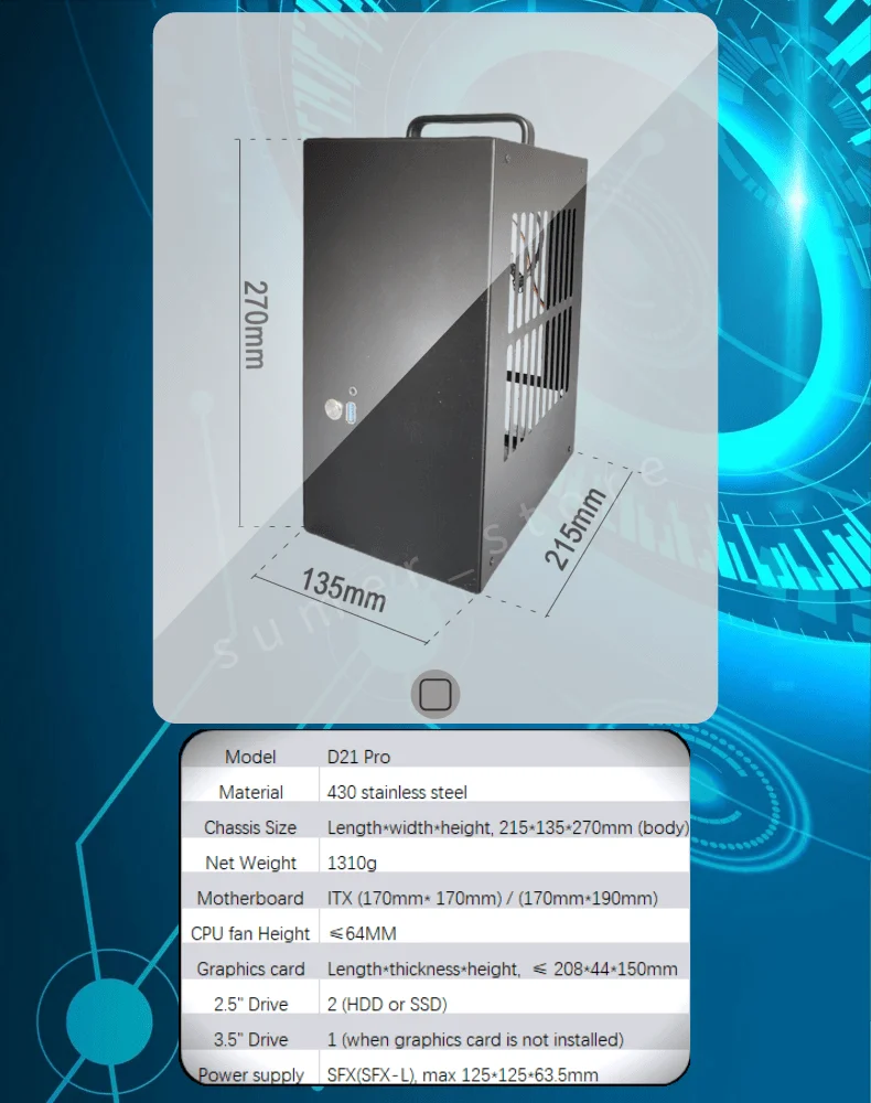 Comprar D21pro A4 chasis 17x19cm placa base Mini ITX juego ordenador soporte tarjeta gráfica I7 Display Case independiente Dream D21 Pro