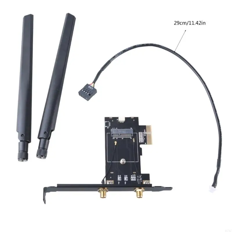 Convertidor NGFF M.2 a PCIE, tarjeta WiFi compatible con Bluetooth con antena para 7260 8265 9260 AX200 AX210