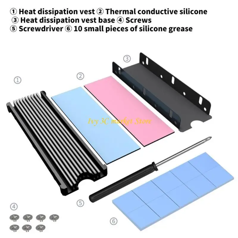 Perfectamente adecuado para computadoras de escritorio, portátiles y estaciones de trabajo que requieren una gestión eficiente del calor, este disipador de calor es fácil de instalar con tornillos de ajuste de altura para varios tamaños de disco sólido M.2.