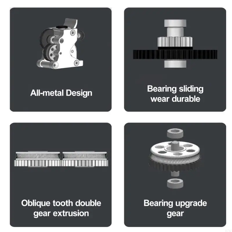 Logre una extrusión más rápida y estable gracias al engranaje especialmente diseñado con dientes en ángulo.