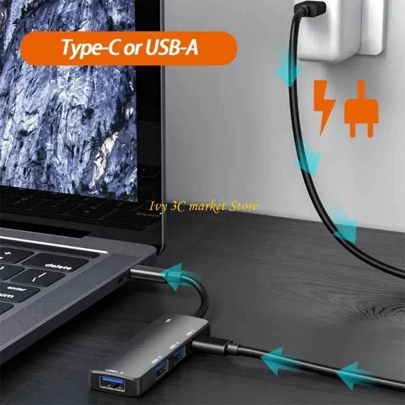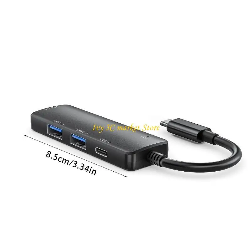 Equipado con tres puertos USB y un puerto tipo C, este concentrador de aleación de aluminio admite Power Delivery para una carga rápida y una sincronización eficiente de los datos.