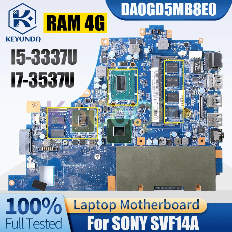 Comprar DA0GD5MB8E0-placa base para portátil SONY SVF14A, I5-3337U RAM, I7-3537U, 4G, N14M-LP-S-A1, 1G, completamente probada