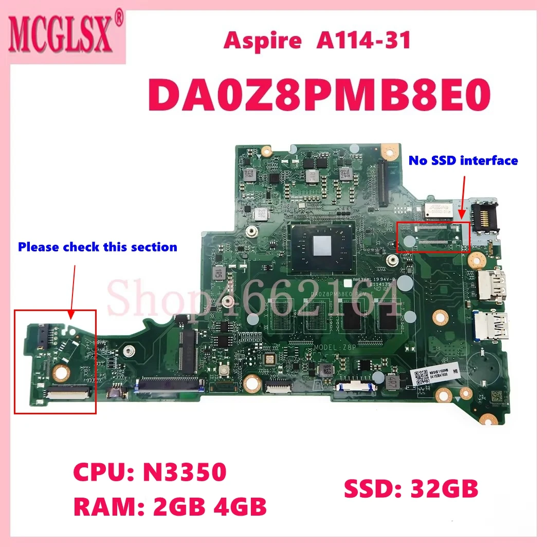 Comprar DA0Z8PMB8E0 con CPU N3350 2GB 4GB-RAM 32GB-SSD placa base para ordenador portátil Acer Aspire A114-31Notebook placa base 100% prueba OK