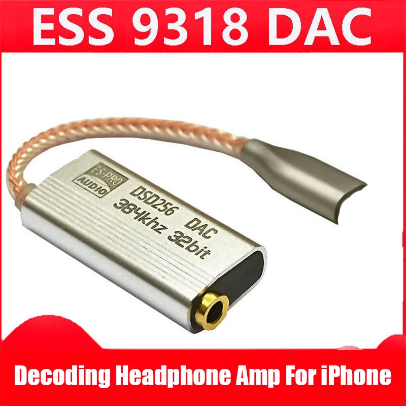 Comprar DAC-amplificador de auriculares ES9318, adaptador de decodificación HiFi, tarjeta de sonido para iPhone, iOS, Android, Win10, tipo C, decodificador lightning a 3,5 MM