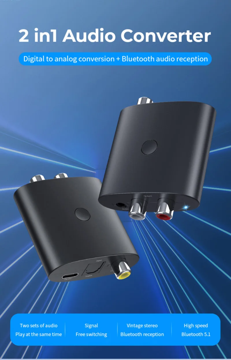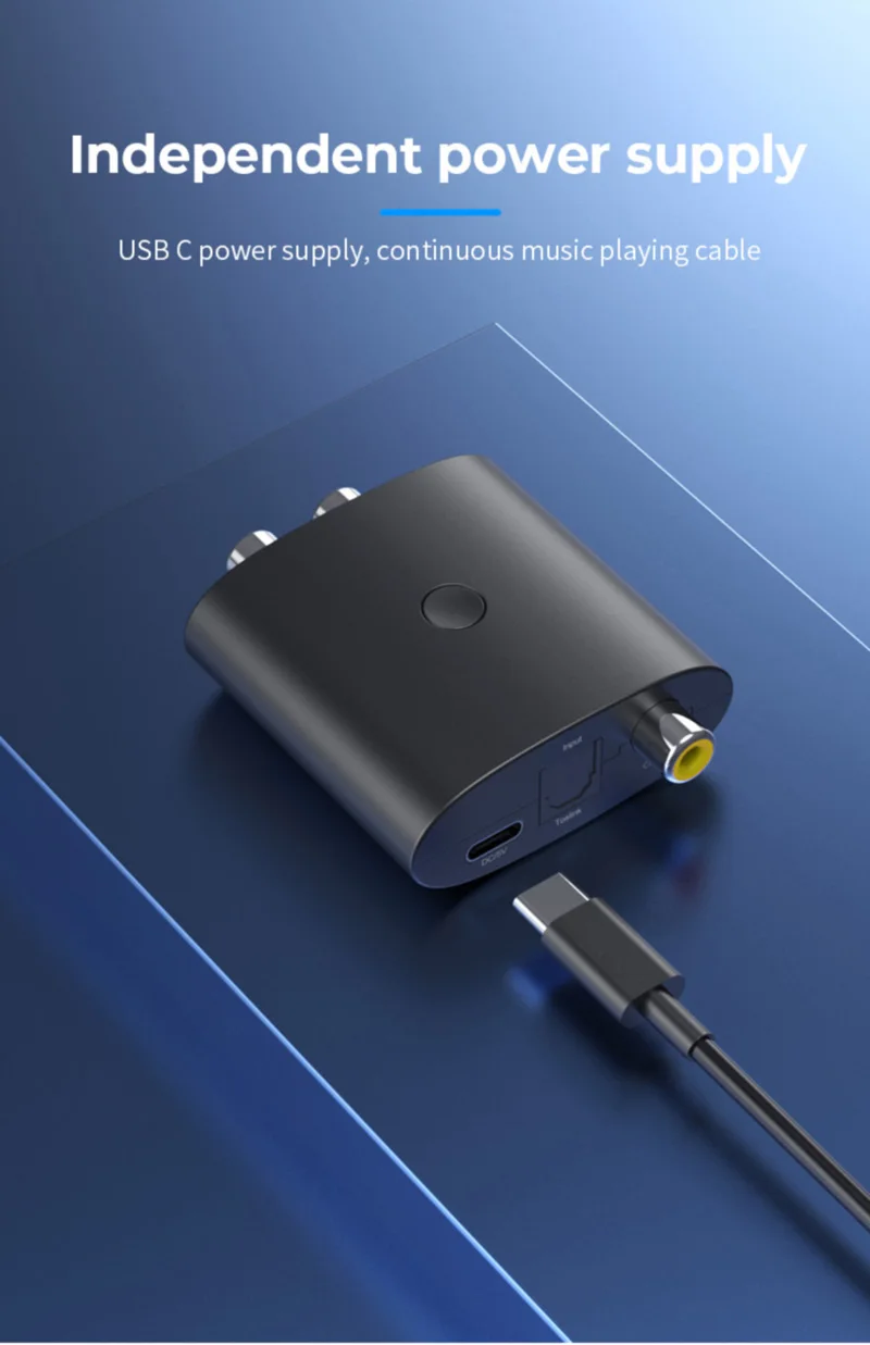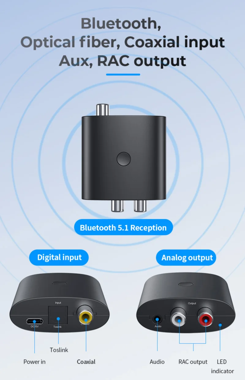 Comprar DAC-receptor de Audio Digital a analógico con Bluetooth 5,1, convertidor de 3,5 MM, AUX, RCA, Coaxial, adaptador óptico estéreo inalámbrico para TV, PC y coche